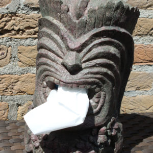 Plasați o cutie de șervețele în spate și trageți unul prin din nasul statuii Tiki. Este foarte util în dormitor sau bucătărie.