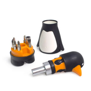 Acest breloc sub forma unui roboțel este multifuncțional, putând fi utilizat și ca lanternă, oferind suficientă lumină cu ajutorul celor două LED-uri amplasate pe capul roboțelului și care pot fi aprinse apăsând butonul disimulat sub forma gurii roboțelului. Înainte de prima utilizare a lanternei desfaceți capacul bateriei aflat pe spatele roboțelului prin rotire și scoateți plasticul izolator de sub baterie ce are rolul de a preveni consumarea bateriei în timpul transportului. Lumina oferită de breloc poate fi utilă când căutați ceva într-o geantă sau dacă doriți să descuiați o ușă când este întuneric. Biți pentru șurubelniță sunt fabricați din INOX și sunt depozitați în corpul roboțelului, putând fi scoși după deschiderea capacului aflat în tălpile picioarelor roboțelului. Biții pot fi atașați cu ușurință pe capul roboțelului, în locașul special prevăzut, iar fixarea lor este asigurată de un magnet. Pentru a putea fi atașat cu ușurință la chei, brelocul este prevăzut cu un inel de chei.
