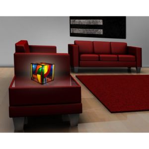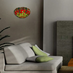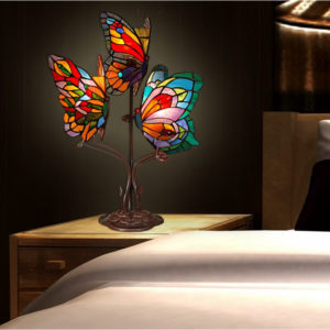 O lampă cu dimensiuni potrivite pentru a decora o masă, iar când aceasta este aprinsă creează o atmosferă plăcută cu lumina sa caldă și multicoloră specifică lămpilor cu abajur în stil Tiffany!
